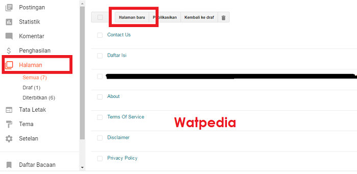 - Masuk ke Dashboar blogger dan pilih Halaman Baru sebagai mana kita biasa membuat page atau halaman yang baru. Lihat gambar jika masih bingung.